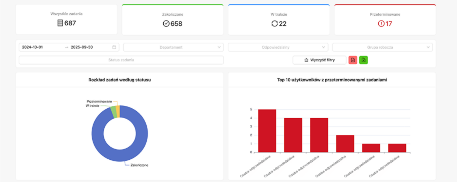 - Eksport danych: Eksportuj raporty do Excela lub PDF w celu dalszej analizy lub udostępnienia.